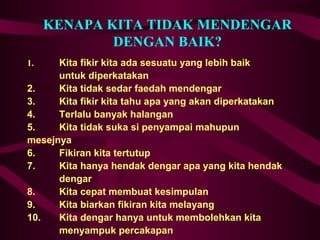 . Namun meski begitu tidak berarti kita selalu dapat berkomunikasi dengan baik. Kaedah tunjuk cara adalah kaedah yang telah lama digunakan di sekolah. Sampel rawak telah diambil dengan bilangan responden lelaki dan perempuan yang masing-masing terdiri daripada 50 orang.